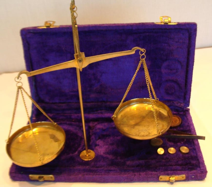 VINTAGE BRASS SCALES WITH WEIGHTS IN CARRY CASE.586117+14