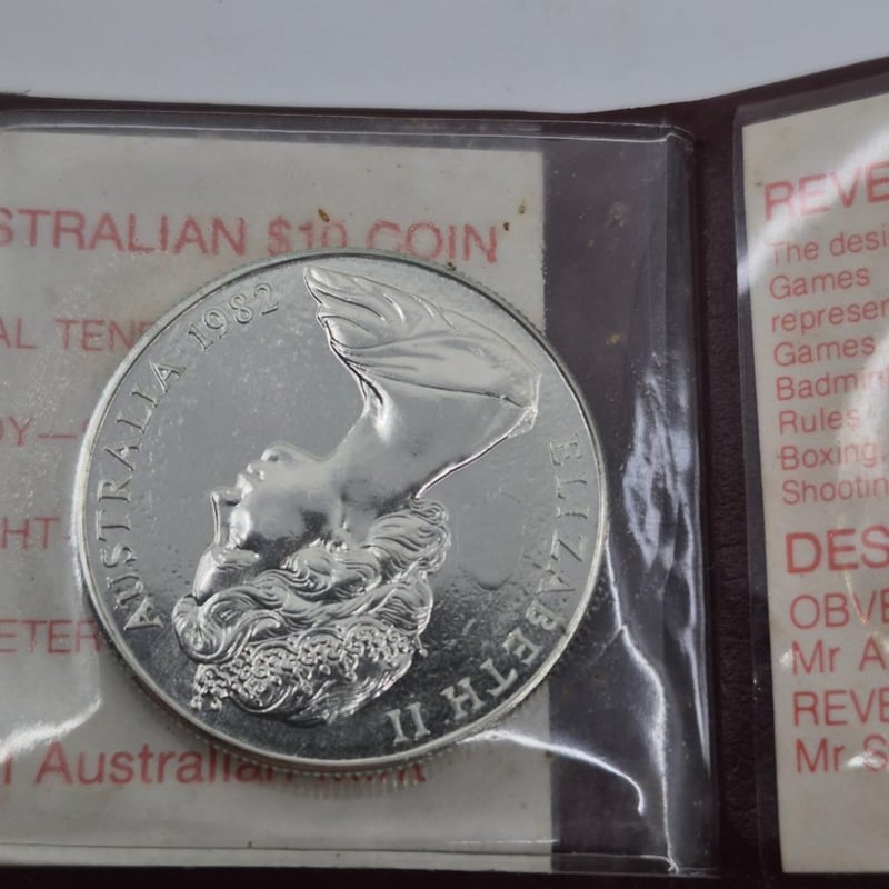 AUSTRALIAN COIN Royal Australian Mint 1982 Commonwealth Games $10 Silver Coin. Condition: UNC-PROOF587658+88