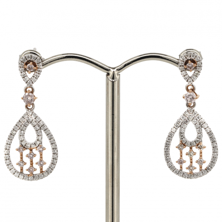 14K WHITE/ROSE GOLD, PINK DIAMOND, DROP EARRINGS. The Earrings Feature, 16 Round Brilliant Cut, Blush Pink, Diamonds (0.26Ct Tdw, Blush Pink, Si Clarity), Set In The Stud, Joint And Centre Of The Earrings. Decorating The Pear Hoop Designs Are, 120 Round Brilliant Cut, Diamonds (0.41Ct Tdw, F-G Colour, Si Clarity), Claw Set. The Earrings Have Post-Backs, With 14K White Gold Butterfly Clasps. Valuations Provided by an Independent Third-Party Professional Not Directly Associated With Lloyds Auctions at AUD $$14,800.00This valuation has been conducted by an independent third-party professional. The valuation amount is an assessment by the issuing valuer and does not reflect the auction value of the item. Any inquiries regarding the valuation should be directed to the issuing valuer (refer to contact details on the certificate), as Lloyds Auctions has no affiliation or influence over the valuation, the valuer, or the stated amount. Condition: Good - Refer Images 0645842+3196