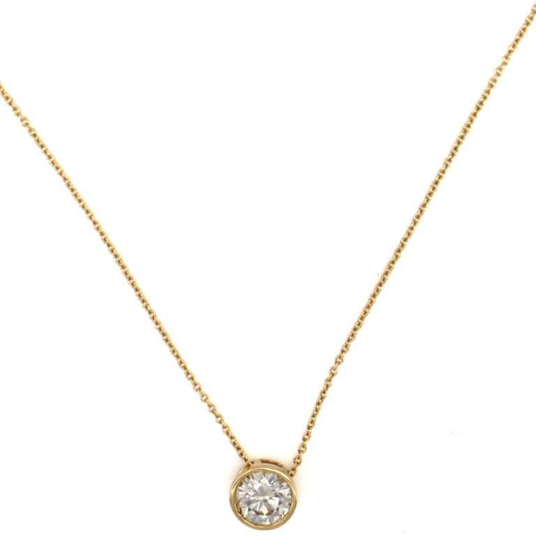 14K YELLOW GOLD, 0.93CT DIAMOND, SOLITAIRE SLIDER NECKLACE. The Pendant Features, One Round Brilliant Cut, Diamond (0.93Ct, H-I Colour, Si2-P1 Clarity), Bezel Set. The Necklace Features A Fine Cable Link Chain With A Lobster Claw Clasp. Necklace Length Is 50Cm. Valuations Provided by an Independent Third-Party Professional Not Directly Associated With Lloyds Auctions at AUD $$17,000.00This valuation has been conducted by an independent third-party professional. The valuation amount is an assessment by the issuing valuer and does not reflect the auction value of the item. Any inquiries regarding the valuation should be directed to the issuing valuer (refer to contact details on the certificate), as Lloyds Auctions has no affiliation or influence over the valuation, the valuer, or the stated amount. Condition: Good - Refer Images 0645842+3111
