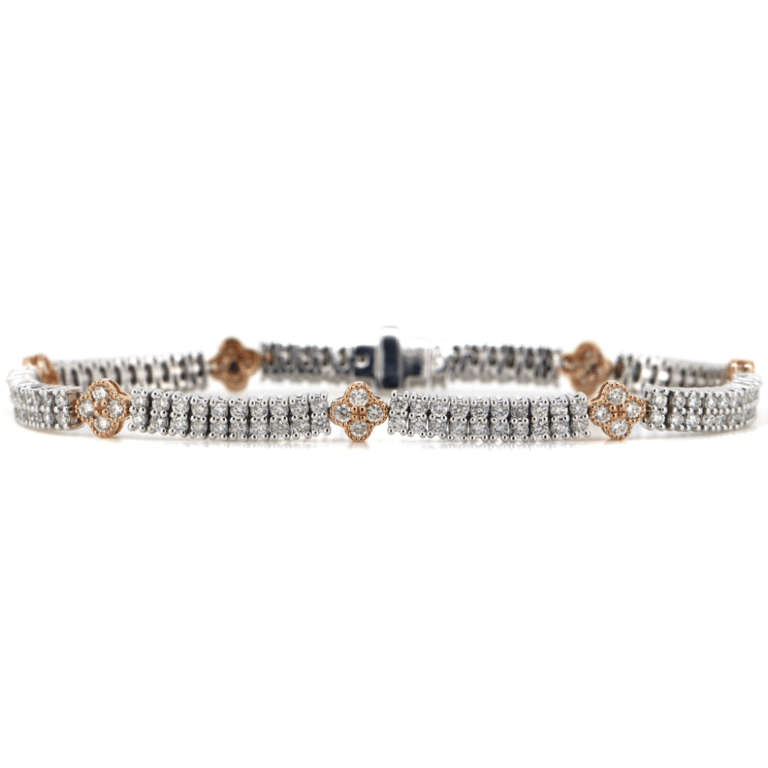 14K WHITE/ROSE GOLD, PINK DIAMOND AND DIAMOND, DOUBLE ROW TENNIS BRACELET. The Design Features, 28 Round Brilliant Cut, Blush Pink Diamonds (2.75Ct Tdw, Si1-Si2 Clarity), Bead Set. Encompassing The Centre Are, 130 Round Brilliant Cut, Diamonds (2.18Ct Tdw, G-H Colour, Si1-Si2 Clarity),Claw Set In 2 Rows. The Bracelet Has A Box Lock Closure With 2 Figure Eight Safety Clips. Bracelet Length Is 17.5Cm. Valuations Provided by an Independent Third-Party Professional Not Directly Associated With Lloyds Auctions at AUD $$49,000.00This valuation has been conducted by an independent third-party professional. The valuation amount is an assessment by the issuing valuer and does not reflect the auction value of the item. Any inquiries regarding the valuation should be directed to the issuing valuer (refer to contact details on the certificate), as Lloyds Auctions has no affiliation or influence over the valuation, the valuer, or the stated amount. Condition: Good - Refer Images 0645842+3150