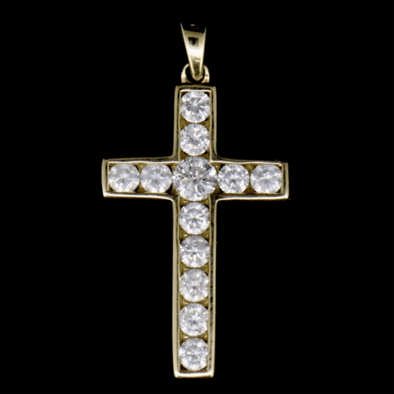 14K YELLOW GOLD, 0.77CT TDW DIAMOND, CRUCIFIX PENDANT. The Pendant Features, 12 Round Brilliant Cut, Diamonds (0.77Ct Tdw, G-H Colour, Si1-Si2 Clarity), Channel Set. Valuations Provided by an Independent Third-Party Professional Not Directly Associated With Lloyds Auctions at AUD $$8,500.00This valuation has been conducted by an independent third-party professional. The valuation amount is an assessment by the issuing valuer and does not reflect the auction value of the item. Any inquiries regarding the valuation should be directed to the issuing valuer (refer to contact details on the certificate), as Lloyds Auctions has no affiliation or influence over the valuation, the valuer, or the stated amount. Condition: Good - Refer Images 0645841+338
