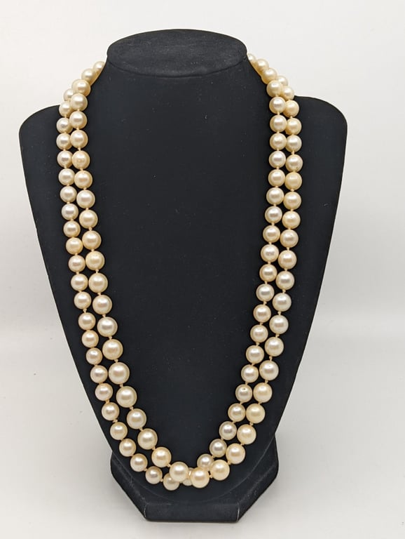CONTINUOUS STRAND OF 114 AKOYA CULTURED PEARLS Continuous Strand Of 114 Akoya Cultured Pearls 9.75Mm - 7.50Mm Off Round, Dull Lustre Creamy Hue Length - 117.00Cm Total Item Weight: 104.26g Condition: Good - Refer To Images This valuation has been conducted by an independent third-party professional. The valuation amount is an assessment by the issuing valuer and does not reflect the auction value of the item. Any inquiries regarding the valuation should be directed to the issuing valuer (refer to contact details on the certificate), as Lloyds Auctions has no affiliation or influence over the valuation, the valuer, or the stated amount. Insurance Replacement Valuation Amount: $1,700.00 VAULT 586147+2