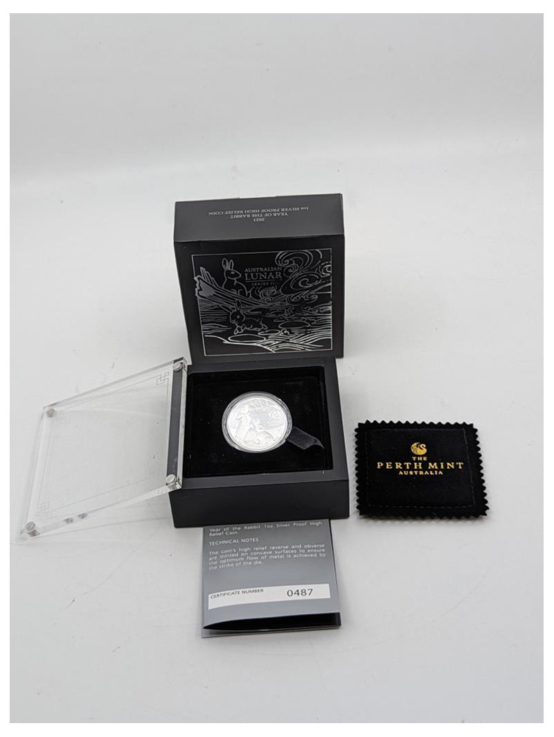 AUSTRALIAN THE PERTH MINT 2023 LUNAR SERIES YEAR OF THE RABBIT DOMED SILVER COIN. Condition: Proof235247+37