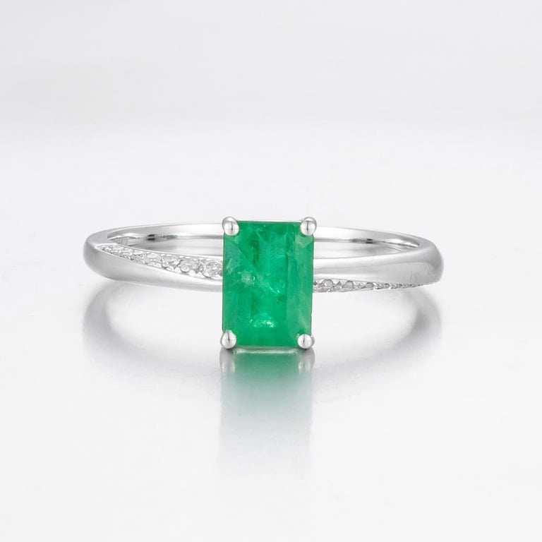 14CT WHITE GOLD COLOMBIAN EMERALD AND DIAMOND DRESS RING. Featuring Centre, One Emerald Cut, Vivid Green Colombian Emerald (1.14Ct, Heavy Inclusions), Claw Set, With 16 Round Brilliant Cut Diamonds (0.09Ct Tdw, G-H Colour, Si1-Si2 Clarity), Bead Set. Ring Size O. Valuations Provided by an Independent Third-Party Professional Not Directly Associated With Lloyds Auctions at AUD $11800This valuation has been conducted by an independent third-party professional. The valuation amount is an assessment by the issuing valuer and does not reflect the auction value of the item. Any inquiries regarding the valuation should be directed to the issuing valuer (refer to contact details on the certificate), as Lloyds Auctions has no affiliation or influence over the valuation, the valuer, or the stated amount. Condition: Good - Refer Images 0587679+1254