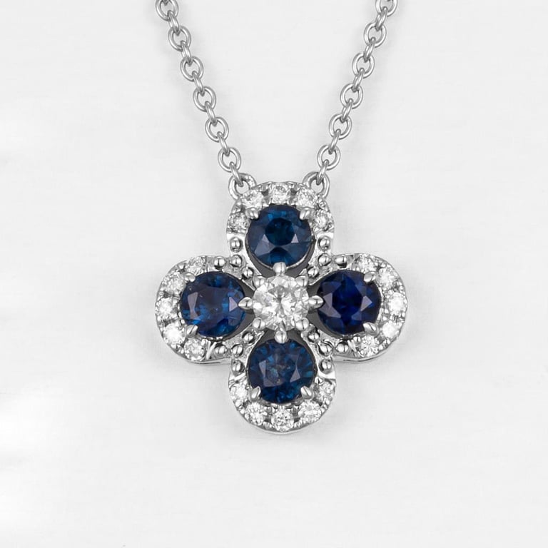 9CT WHITE GOLD CEYLON SAPPHIRE AND DIAMOND FLORAL PENDANT. Necklace Featuring, 4 Round Cut, Dark Vivid Greyish-Blue Ceylon Sapphires (0.84Ct Tsw, Slightly Included), Claw Set, With 21 Round Brilliant Cut Diamonds (0.21Ct Tdw, G-H Colour, Vs2-Si1 Clarity), Bead Set. Chain Length Is Adjustable Between 45 And 50Cm. Valuations Provided by an Independent Third-Party Professional Not Directly Associated With Lloyds Auctions at AUD $12500This valuation has been conducted by an independent third-party professional. The valuation amount is an assessment by the issuing valuer and does not reflect the auction value of the item. Any inquiries regarding the valuation should be directed to the issuing valuer (refer to contact details on the certificate), as Lloyds Auctions has no affiliation or influence over the valuation, the valuer, or the stated amount. Condition: Good - Refer Images 0587679+1267