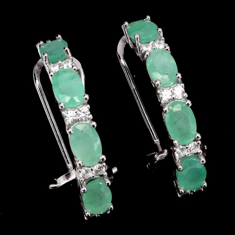 NATURAL EMERALD EARRINGS. Natural Emerald Earrings. Made In Solid Sterling Silver And Plated In14K White Gold. Features Natural Green Emeralds And Sparkling Czs. Earrings Measure 26X4Mm. Condition: Good - Refer Images 0488258+11