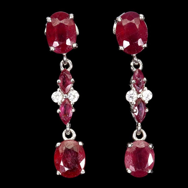 NATURAL RUBY DROP EARRINGS. Natural Ruby Drop Earrings. Made In Solid Sterling Silver And Plated In14K White Gold. Features Natural Red Rubies And Sparkling Czs. Earrings Measure 26X5Mm. Condition: Good - Refer Images 0488258+12