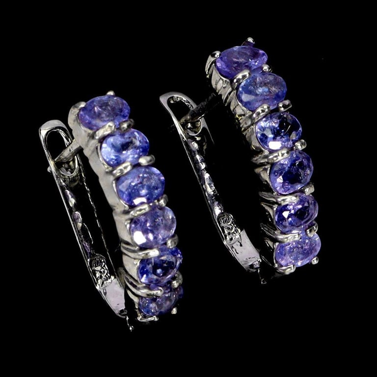NATURAL TANZANITE EARRINGS. Natural Tanzanite Earrings. Made In Solid Sterling Silver And Plated In14K White Gold. Features Natural Violetish Blue Tanzanite'S. Earrings Measure 12X4Mm Condition: Good - Refer Images 0488258+16
