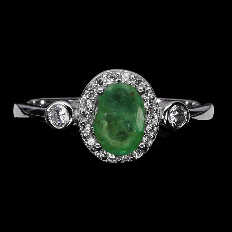 NATURAL EMERALD RIN Natural Emerald Ring. Made In Solid Sterling Silver And Plated In 14K White Gold. Features Natural Green Emerald And Sparkling Czs. Ring Size 8 Condition: Good - Refer Images 0488258+15