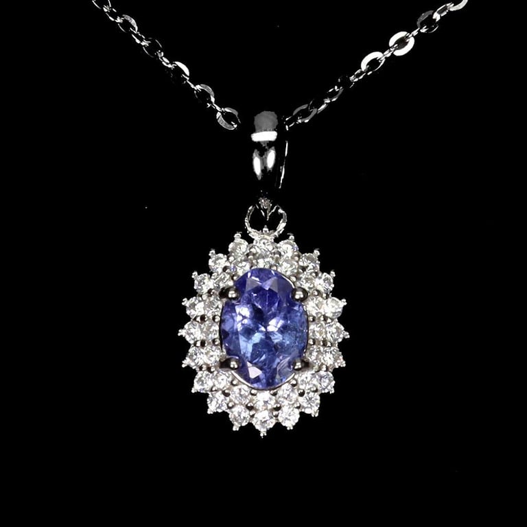 NATURAL TANZANITE PENDANT & CHAIN. Natural Tanzanite Pendant & Chain. Made In Solid Sterling Silver And Plated In14K White Gold. Features Natural Violetish Blue Tanzanite And Sparkling Czs. Chain Measures 18 Inches. Condition: Good - Refer Images 0488258+22