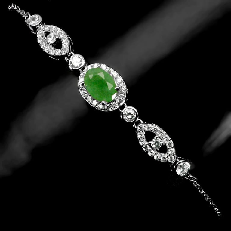 NATURAL EMERALD BRACELET Natural Emerald Bracelet. Made In Solid Sterling Silver And Plated In14K White Gold. Features Natural Green Emerald And Sparkling Czs. Bracelet Measures 8 Inches. Condition: Good - Refer Images 0488258+23