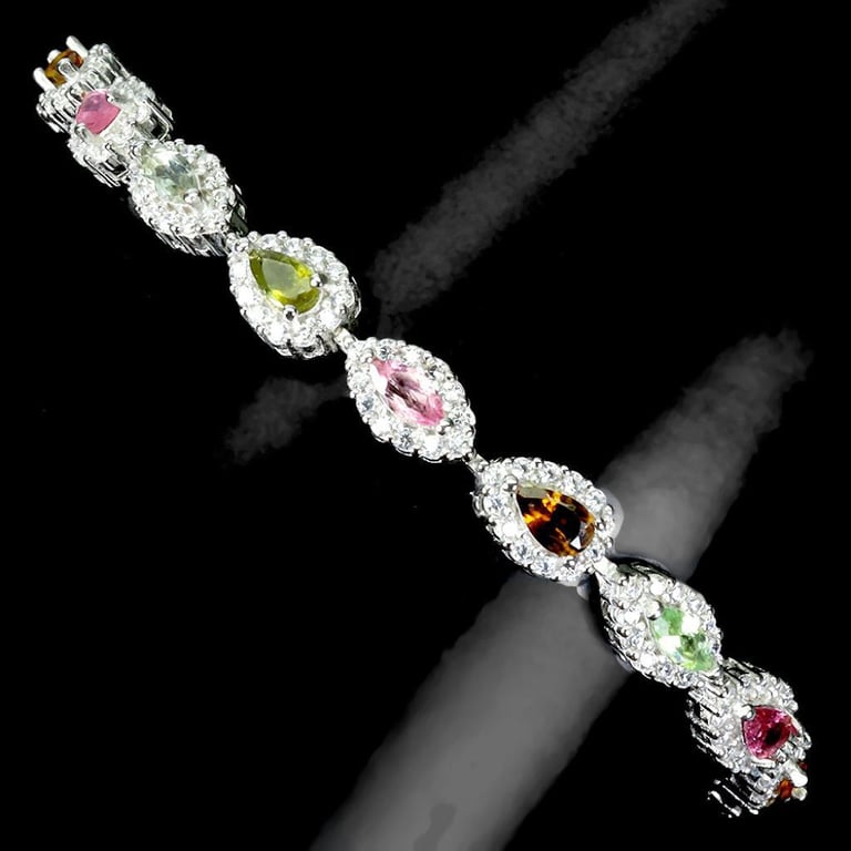 NATURAL FANCY TOURMALINE TENNIS BRACELET. Natural Fancy Tourmaline Tennis Bracelet. Made In Solid Sterling Silver And Plated In14K White Gold. Features Natural Marquise Facet Fancy Tourmaline And Sparkling Czs. Bracelet Measures 7 Inches. Condition: Good - Refer Images 0488258+28