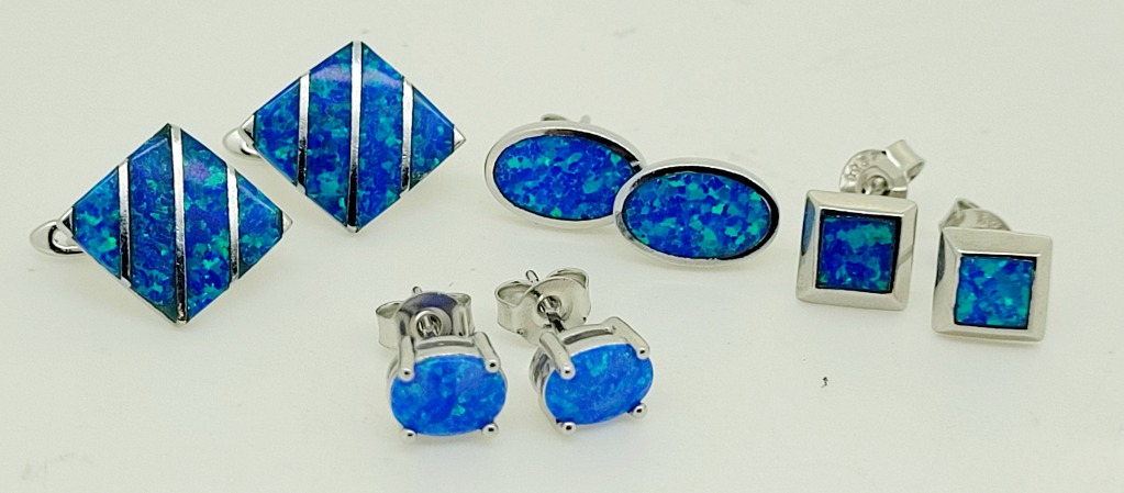 4X STERLING SILVER CREATED OPAL STUDD EARRINGS