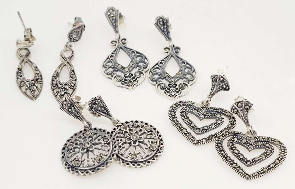 4X STERLING SILVER DROP EARRINGSTotal Item Weight: 15.98gMarkings: 925Condition: Good - Refer To Images488252+19