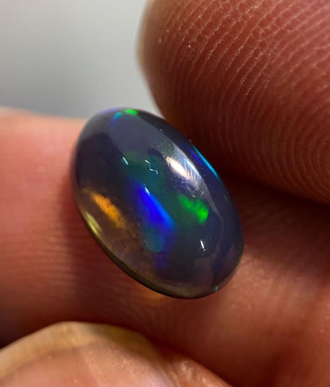 2.30 CARATS NATURAL WELLO-BLACK OPAL 2.30 Carats Natural Wello-Black OpalStone = OpalWeight = 2.30 CaratsColour = Multi-Colour Treatment = SmokedCut = Cabochon Note = Picture Taken Under Light. Condition: Good - Refer Images 0488269+30