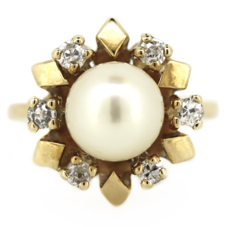 9K YELLOW GOLD, CREAM CULTURED SOUTH SEA PEARL AND DIAMOND, VINTAGE INSPIRED RING. The Centre Features, One Round, Cream, Cultured South Sea Pearl (7.40Mm Size, Aa Quality, Excellent Lustre), Drill Set. Decorating The Centre Are, 6 Old Victorian Cut, Diamonds (0.21Ct Tdw, H-I Colour, Si1 Clarity), Claw Set. Ring Size F 1/2. Valuations Provided by an Independent Third-Party Professional Not Directly Associated With Lloyds Auctions at AUD $$5,000.00This valuation has been conducted by an independent third-party professional. The valuation amount is an assessment by the issuing valuer and does not reflect the auction value of the item. Any inquiries regarding the valuation should be directed to the issuing valuer (refer to contact details on the certificate), as Lloyds Auctions has no affiliation or influence over the valuation, the valuer, or the stated amount. Condition: Good - Refer Images 0645839+1430