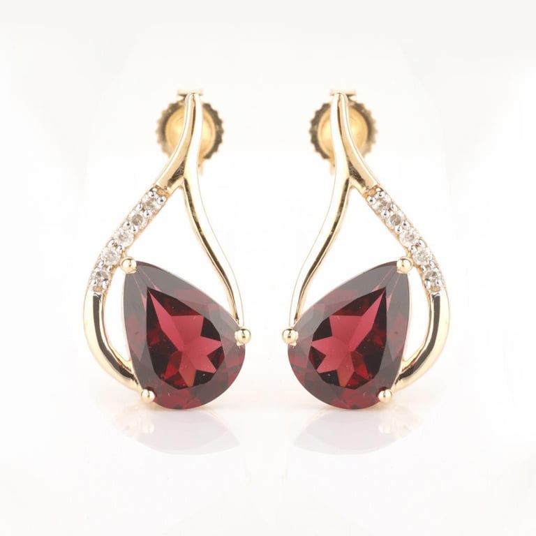 9CT YELLOW GOLD NATURAL GARNET & DIAMOND EARRINGS Weight Of The Item: 2.92 GFineness Of Metal(S): Yellow Gold 9KtThe Earrings Consists Of (2) Pear Brilliant Natural Garnet. Surrounding The Main Stones Are Round Brilliant Cut Natural Diamonds.Antique StyleIdentification: Natural GarnetColor: RedShape: Pear Brilliant CutNo. Of Stone: 2Dimension: 9 Mm X 7 Mm X 5.4 MmWeight: 4.1 CaratsCut: Very GoodIdentification: Natural DiamondShape: Round Brilliant CutWeight: 0.1 CtsCut: Excellent. Certificates Are Provided By Gemological Science International (Gsi), An Independent Third-Party Gemological Laboratory Based In The Usa And Recognised Among The Top 10 Gem Labs Globally Condition: Good - Refer Images 0488266+7