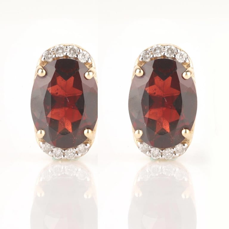 9CT YELLOW GOLD NATURAL GARNET & DIAMOND EARRINGS Weight Of The Item: 1.91 GFineness Of Metal(S): Yellow Gold 9KtThe Earrings Consists Of (2) Oval Brilliant Natural Garnet. Surrounding The Main Stones Are Round Brilliant Cut Natural Diamonds.Antique StyleIdentification: Natural GarnetColor: RedShape: Oval Brilliant CutNo. Of Stone: 2Dimension: 9 Mm X 7 Mm X 5.4 MmWeight: 3.65 CaratsCut: Very GoodIdentification: Natural DiamondShape: Round Brilliant CutWeight: 0.08 CtsCut: Excellent. Certificates Are Provided By Gemological Science International (Gsi), An Independent Third-Party Gemological Laboratory Based In The Usa And Recognised Among The Top 10 Gem Labs Globally Condition: Good - Refer Images 0488266+14