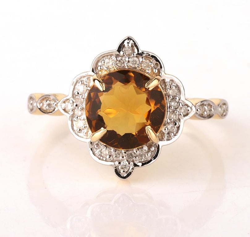 9CT YELLOW GOLD NATURAL CITRINE & DIAMOND RING Weight Of The Item: 2.22 GFineness Of Metal(S): Yellow Gold 9KtThe Ring Consists Of (1) Round Brilliant Natural Citrine. Surrounding The Main Stones Are Round Brilliant Cut Natural Diamonds.Antique StyleIdentification: Natural CitrineColor: YellowShape: Round Brilliant CutNo. Of Stone: 1Dimension: 8 Mm X 8 Mm X 4.8 MmWeight: 2.05 CaratsCut: Very GoodIdentification: Natural DiamondShape: Round Brilliant CutWeight: 0.14 CtsCut: Excellent. Certificates Are Provided By Gemological Science International (Gsi), An Independent Third-Party Gemological Laboratory Based In The Usa And Recognised Among The Top 10 Gem Labs Globally Condition: Good - Refer Images 0488266+70