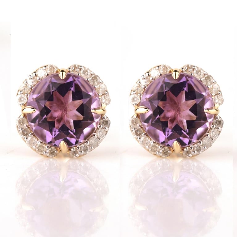9CT YELLOW GOLD NATURAL AMETHYST & DIAMOND EARRINGS Weight Of The Item: 2.06 GFineness Of Metal(S): Yellow Gold 9KtThe Earrings Consists Of (2) Round Brilliant Natural Amethyst. Surrounding The Main Stones Are Round Brilliant Cut Natural Diamonds.Antique StyleIdentification: Natural AmethystColor: PurpleShape: Round Brilliant CutNo. Of Stone: 2Dimension: 8 Mm X 8 Mm X 4.8 MmWeight: 3.4 CaratsCut: Very GoodIdentification: Natural DiamondShape: Round Brilliant CutWeight: 0.2 CtsCut: Excellent. Certificates Are Provided By Gemological Science International (Gsi), An Independent Third-Party Gemological Laboratory Based In The Usa And Recognised Among The Top 10 Gem Labs Globally Condition: Good - Refer Images 0488266+23