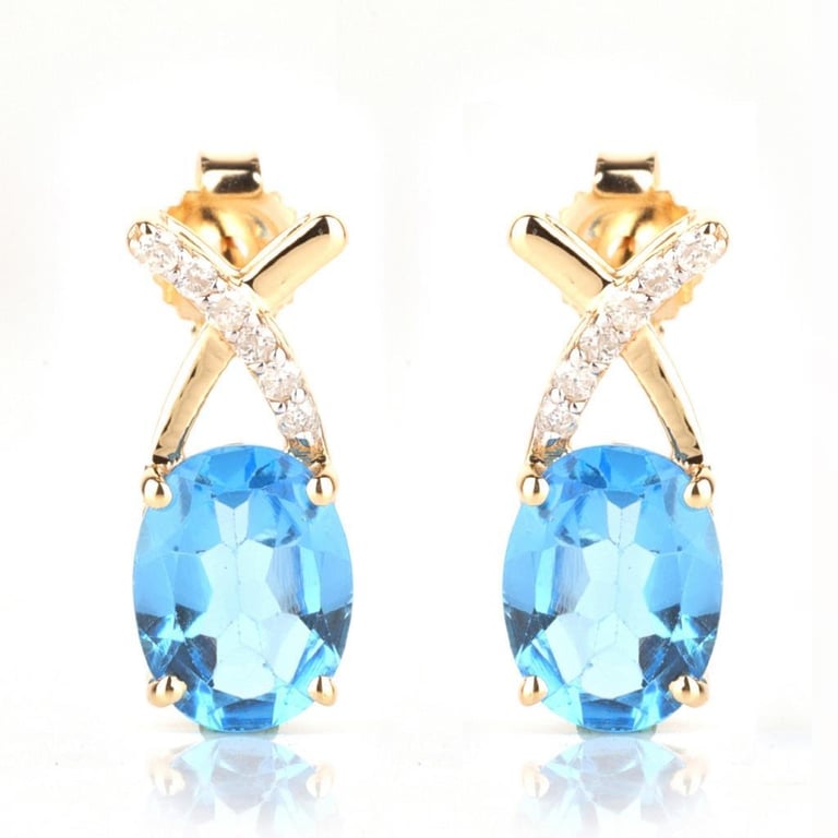 9CT YELLOW GOLD NATURAL SWISS BLUE TOPAZ & DIAMOND EARRINGS Weight Of The Item: 2.05 GFineness Of Metal(S): Yellow Gold 9KtThe Earrings Consists Of (2) Oval Brilliant Natural Swiss Blue Topaz. Surrounding The Main Stones Are Round Brilliant Cut Natural Diamonds.Antique StyleIdentification: Natural Swiss Blue TopazColor: BlueShape: Oval Brilliant CutNo. Of Stone: 2Dimension: 8 Mm X 6 Mm X 4.8 MmWeight: 3.25 CaratsCut: Very GoodIdentification: Natural DiamondShape: Round Brilliant CutWeight: 0.06 CtsCut: Excellent. Certificates Are Provided By Gemological Science International (Gsi), An Independent Third-Party Gemological Laboratory Based In The Usa And Recognised Among The Top 10 Gem Labs Globally Condition: Good - Refer Images 0488266+26