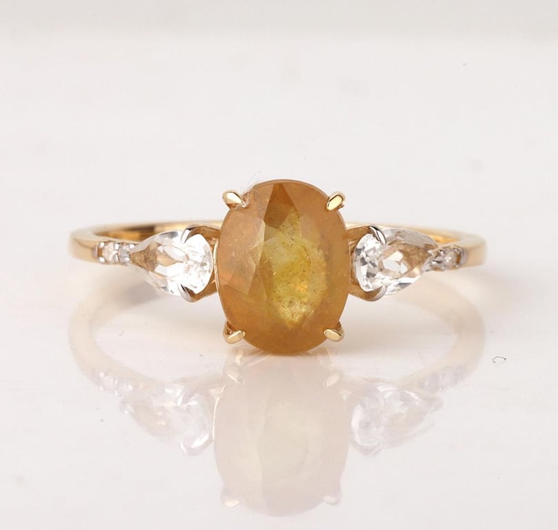 9CT YELLOW GOLD NATURAL 9CT YELLOW SAPPHIRE / NATURAL WHITE TOPAZ & DIAMOND RING Weight Of The Item: 1.51 GFineness Of Metal(S): Yellow Gold 9KtThe Ring Consists Of (1) Oval Brilliant Natural Yellow Sapphire & (2) Pear Brilliant Cut White Topaz. Surrounding The Main Stones Are Round Brilliant Cut Natural Diamonds.Antique StyleIdentification: Natural Yellow Sapphire / Natural White TopazColor: Yellow / WhiteShape: Oval Brilliant Cut / Pear Faceted CutNo. Of Stone: 3Dimension: 8 Mm X 6 Mm X 4.8 MmWeight: 1.85 Carats / 0.47 CaratsCut: Very GoodIdentification: Natural DiamondShape: Round Brilliant CutWeight: 0.02 CtsCut: Excellent. Certificates Are Provided By Gemological Science International (Gsi), An Independent Third-Party Gemological Laboratory Based In The Usa And Recognised Among The Top 10 Gem Labs Globally Condition: Good - Refer Images 0488266+44