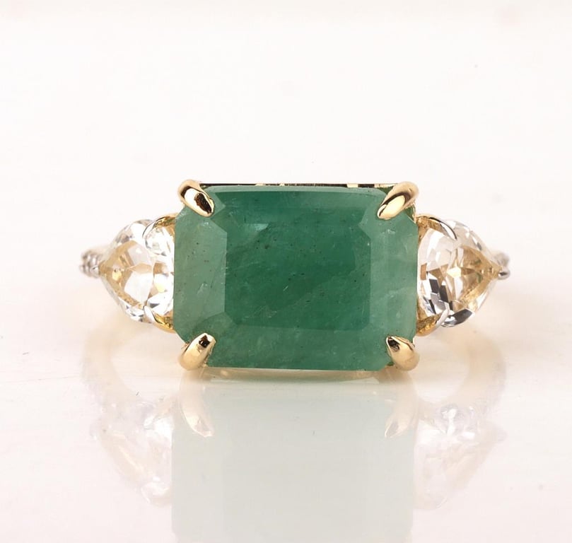 9CT YELLOW GOLD NATURAL EMERALD / NATURAL WHITE TOPAZ & DIAMOND RING Weight Of The Item: 3.01 GFineness Of Metal(S): Yellow Gold 9KtThe Ring Consists Of (1) Octagon Brilliant Natural Emerald & (2) Trillion Brilliant Cut White Topaz. Surrounding The Main Stones Are Round Brilliant Cut Natural Diamonds.Antique StyleIdentification: Natural Emerald / Natural White TopazColor: Green / WhiteShape: Octagon Brilliant Cut / Trillion Faceted CutNo. Of Stone: 3Dimension: 11 Mm X 9 Mm X 6.6 MmWeight: 5.85 Carats / 0.9 CaratsCut: Very GoodIdentification: Natural DiamondShape: Round Brilliant CutWeight: 0.08 CtsCut: Excellent. Certificates Are Provided By Gemological Science International (Gsi), An Independent Third-Party Gemological Laboratory Based In The Usa And Recognised Among The Top 10 Gem Labs Globally Condition: Good - Refer Images 0488266+53