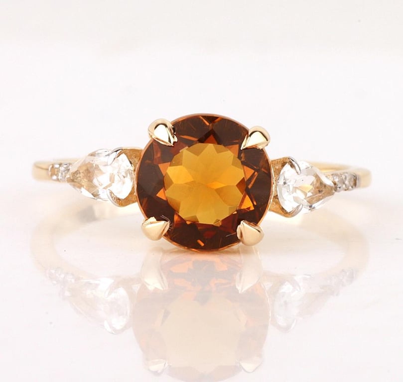 9CT YELLOW GOLD NATURAL CITRINE / NATURAL WHITE TOPAZ & DIAMOND RING Weight Of The Item: 1.72 GFineness Of Metal(S): Yellow Gold 9KtThe Ring Consists Of (1) Round Brilliant Natural Citrine & (2) Pear Brilliant Cut White Topaz. Surrounding The Main Stones Are Round Brilliant Cut Natural Diamonds.Antique StyleIdentification: Natural Citrine / Natural White TopazColor: Yellow / WhiteShape: Round Brilliant Cut / Pear Faceted CutNo. Of Stone: 3Dimension: 8 Mm X 8 Mm X 4.8 MmWeight: 1.45 Carats / 0.5 CaratsCut: Very GoodIdentification: Natural DiamondShape: Round Brilliant CutWeight: 0.02 CtsCut: Excellent. Certificates Are Provided By Gemological Science International (Gsi), An Independent Third-Party Gemological Laboratory Based In The Usa And Recognised Among The Top 10 Gem Labs Globally Condition: Good - Refer Images 0488266+55