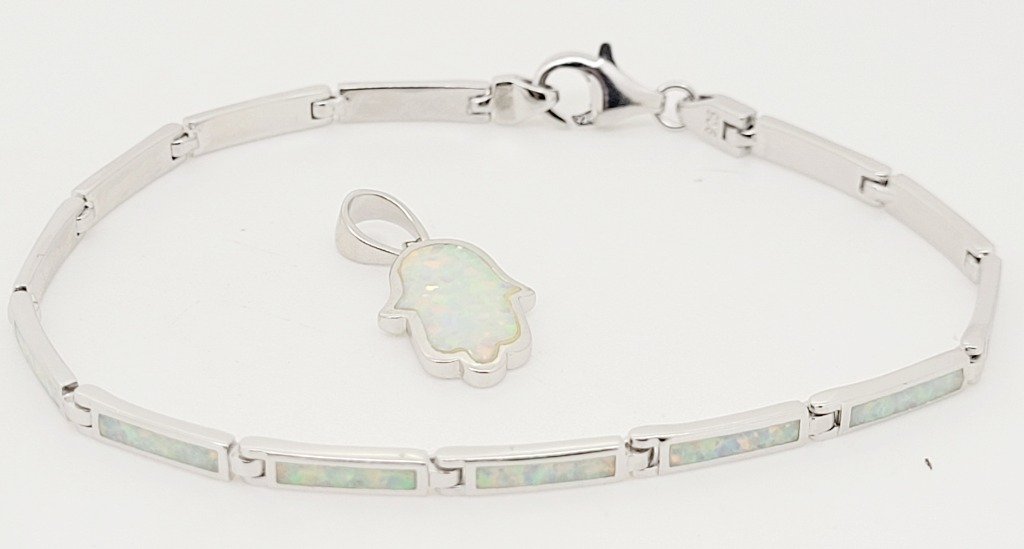 STERLING SILVER CREATED OPAL BRACELET AND PENDANTMarkings: 925Condition: Good - Refer To Images488252+38