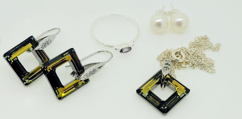 STERLING SILVER JEWELLERYIncludes - 1X Necklace1X Ring2X EarringsMarkings: 925Condition: Good - Refer To Images488252+20