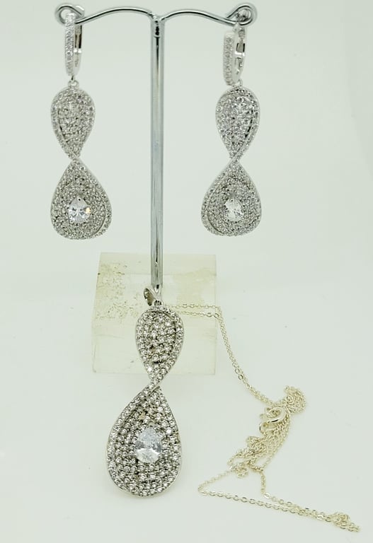 STERLING SILVER AND CUBIC ZIRCONIA EARRINGS AND NECKALCE SETTotal Item Weight: 20.91gMarkings: 925Condition: Good - Refer To Images488252+22