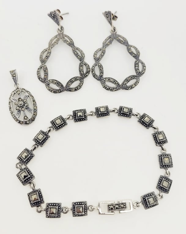 STERLING SILVER NECKLACE EARRINGS AND PENDANT SETTotal Item Weight: 18.15gLength: 18.00cmMarkings: 925Condition: Good - Refer To Images488252+25