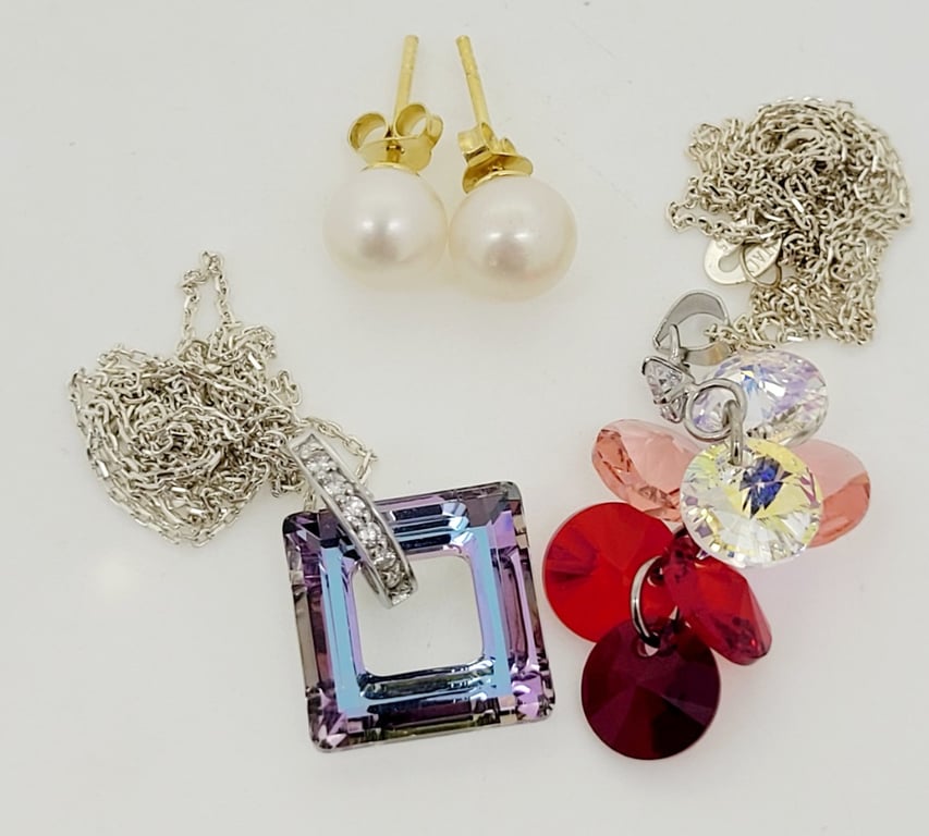 ASSORTED SILVER JEWELLERY INCLUDING 2X NECKLACES AND A PAIR OF EARRINGSCondition: Good - Refer To Images488252+52