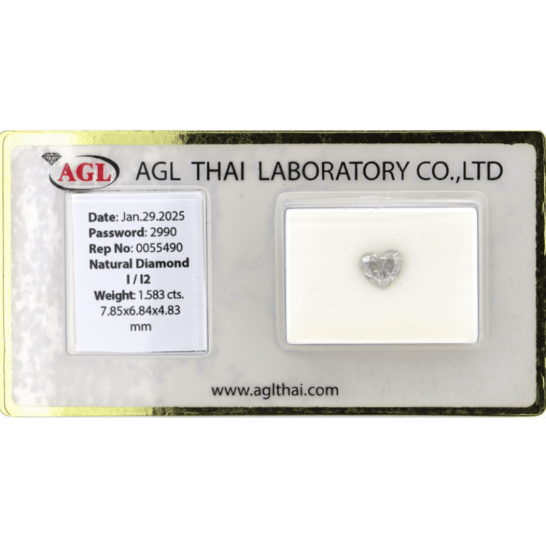 1.583CT CERTIFIED, NATURAL DIAMOND. Heart Brilliant Cut, I Colour, I2 Clarity, Loose, Unset. Stone Comes Sealed With Agl Report: 0055490. Valuations Provided by an Independent Third-Party Professional Not Directly Associated With Lloyds Auctions at AUD $$14,500.00This valuation has been conducted by an independent third-party professional. The valuation amount is an assessment by the issuing valuer and does not reflect the auction value of the item. Any inquiries regarding the valuation should be directed to the issuing valuer (refer to contact details on the certificate), as Lloyds Auctions has no affiliation or influence over the valuation, the valuer, or the stated amount. Condition: Good - Refer Images 0645840+2151