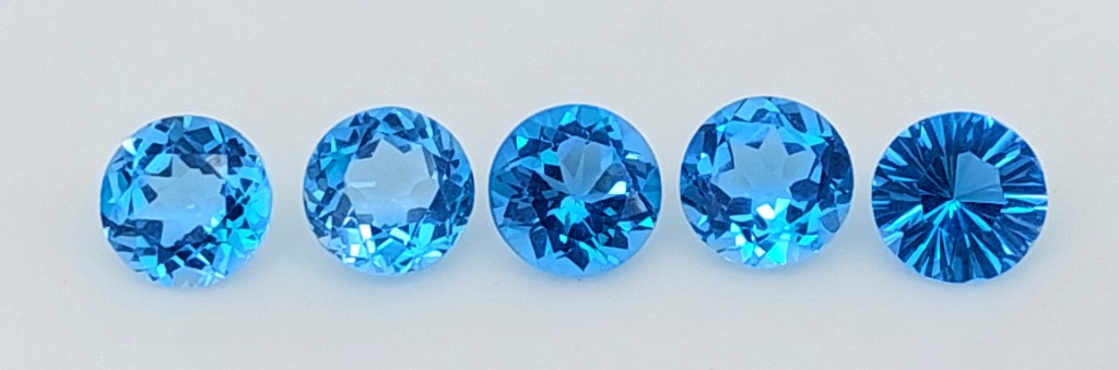 11.29 TCW BLUE TOPAZ GEMSTONES 5 Stones, Round Brilliant Cut Dimensions: Height: 8.00mm Condition: Good - Refer To Images FC 162952+52