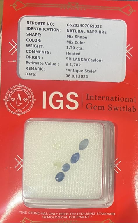 1.70 CARAT NATURAL SAPPHIRE SRILANKA CERTIFIED Condition: Good - Refer Images 0311105+11