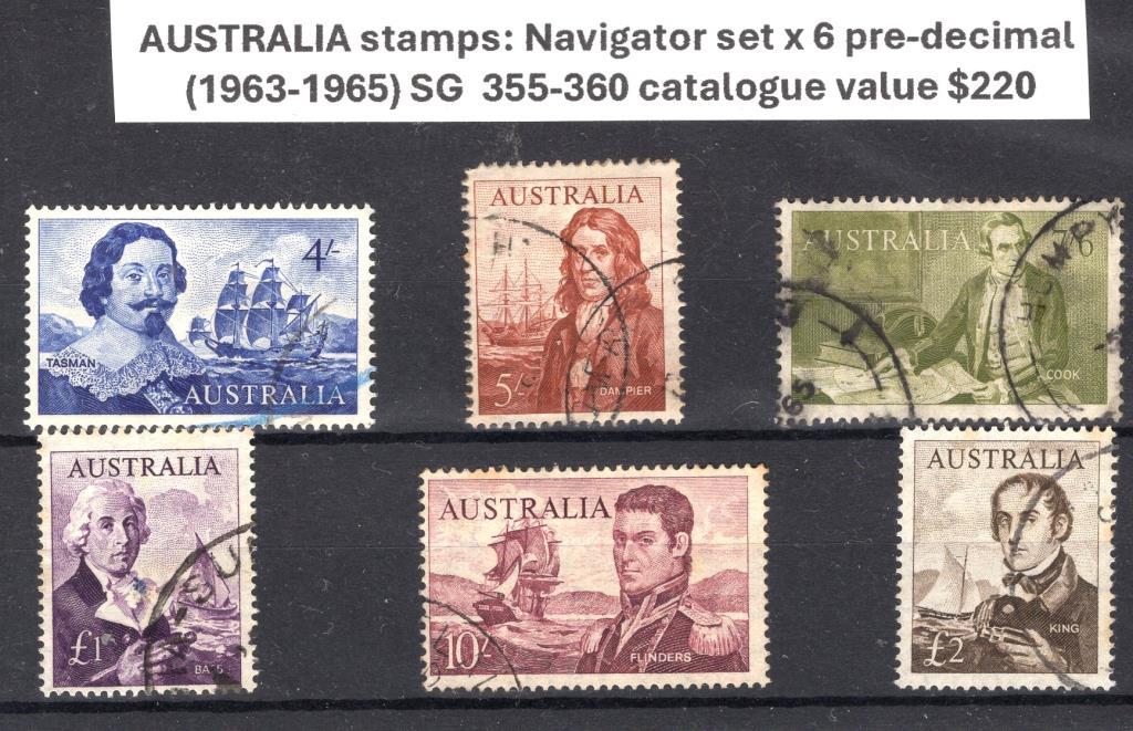 Australia stamps: Navigator pre-decimal set including 2 pound issue, 1963-1965, SG 355-360