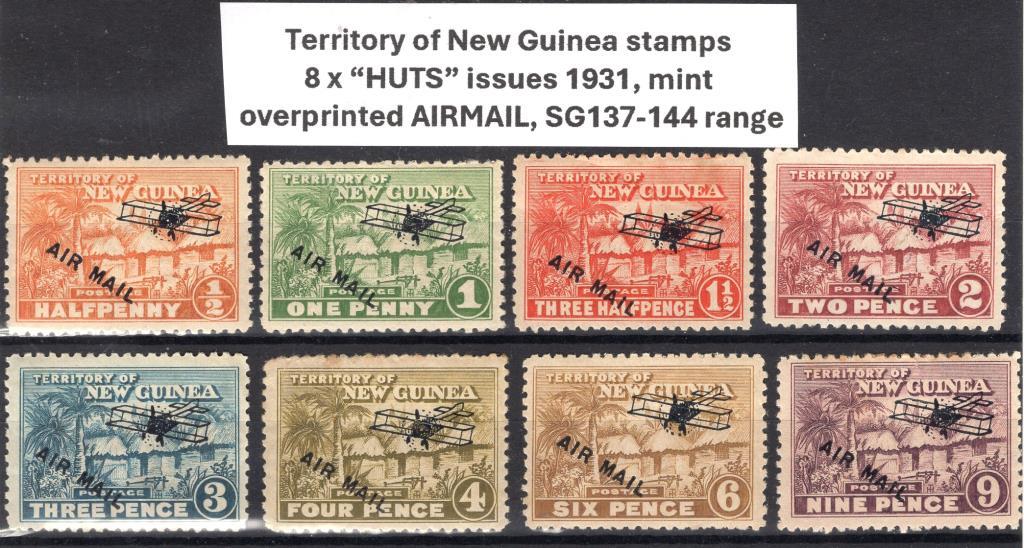 Territory of New Guinea stamps 8 x "huts" issues mint, all overprinted AIRMAIL, 1931, SG 137-144 range