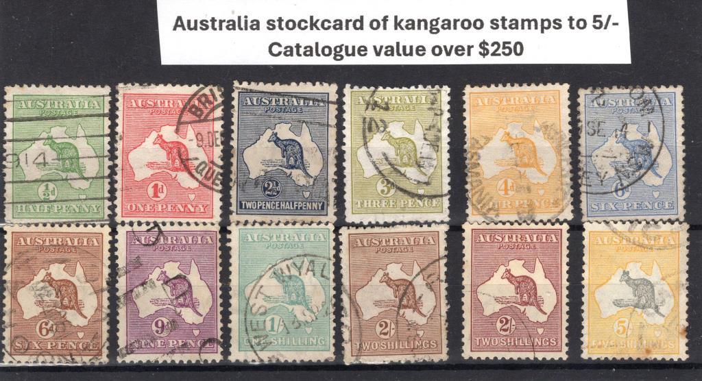 Australia stockcard of kangaroo stamps to 5/- circa 1913-1948