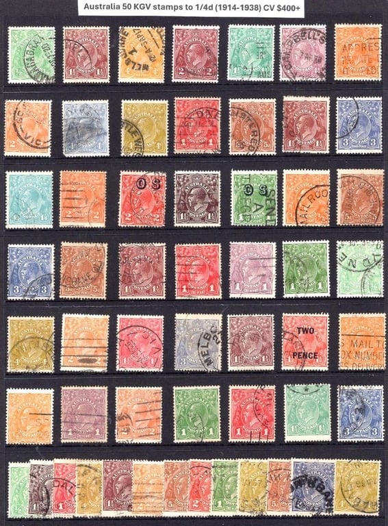 Australia 50 x KGV stamps to 1/4d circa 1914-1938