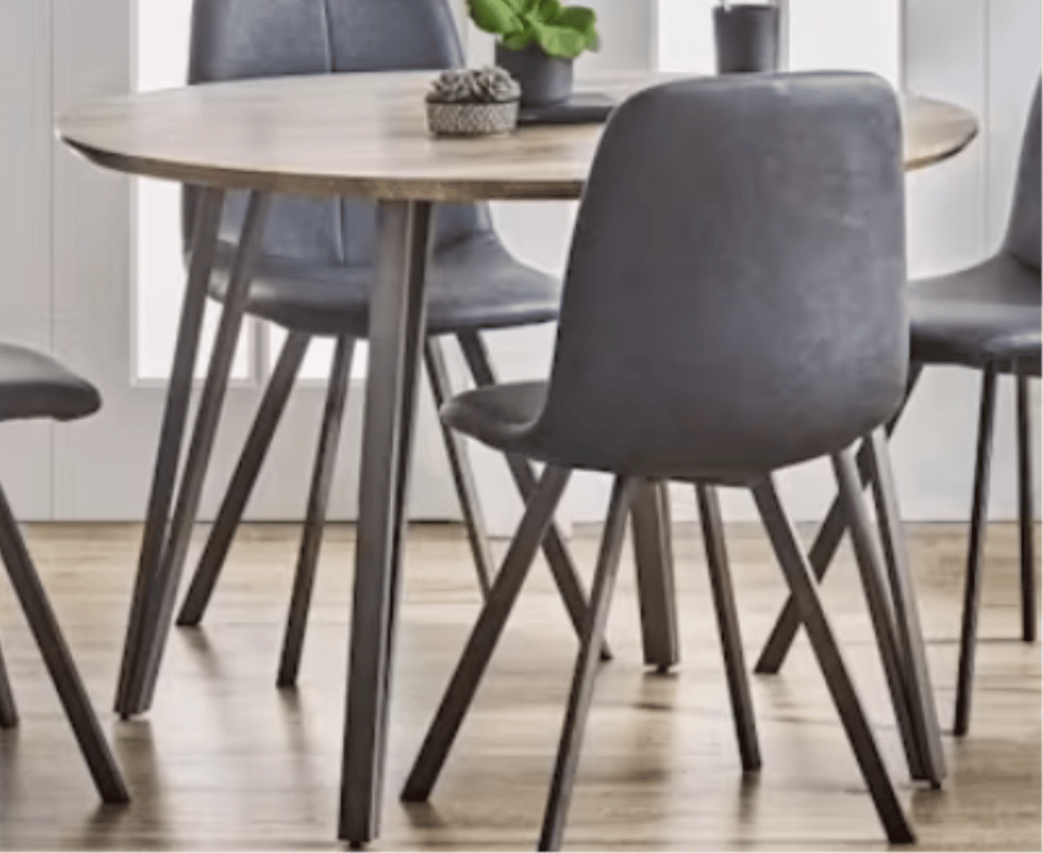 Gwyn Round Dining TableNote: Dining Table Only, Chairs Not IncludedTable Shape RoundFrame Material IronLeg Material IronTable Top Material MDFProduct Height (cm) Dining Table: 76Product Width (cm) Dining Table: 110Product Depth (cm) Dining Table: 110