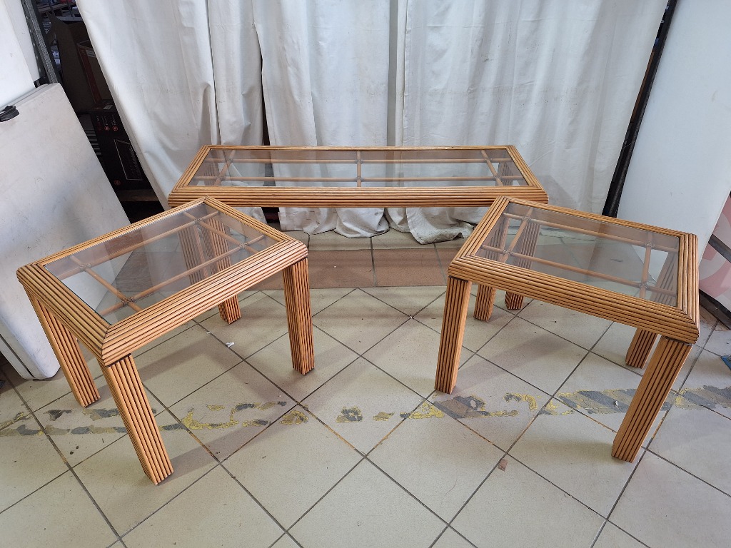 Coffee Tables, Rattan Style with Glass Top, Light Brown Finish Dimensions Small H:54cm W:49cm D:61cm Dimensions Large H:52cm W:49cm D:134cm