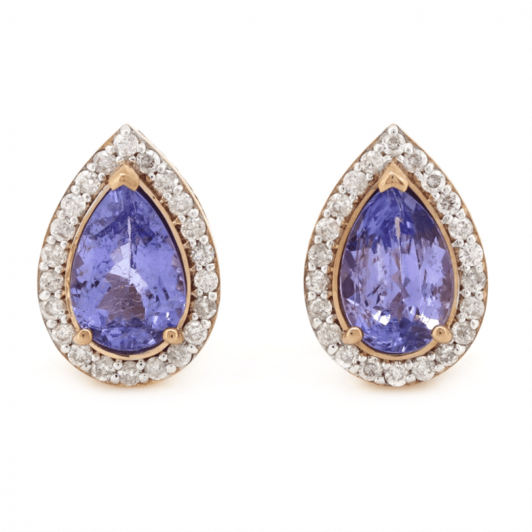 14K ROSE GOLD, TANZANITE AND DIAMOND, HALO STUD EARRINGS. The Centres Feature, 2 Pear Cut, Purplish-Blue, Tanzanites (2.83Ct Tsw, Moderate Eye Visible Inclusions), Claw Set. Surrounding The Centres In Halos Are, 44 Round Brilliant Cut, Diamonds (0.43Ct Tdw, J-K Colour, Si2-I2 Clarity), Bead Set In White Gold. The Earrings Have Post Backs, With 14K Rose Gold Butterfly Clasps. Valuations Provided by an Independent Third-Party Professional Not Directly Associated With Lloyds Auctions at AUD $$6,890.00This valuation has been conducted by an independent third-party professional. The valuation amount is an assessment by the issuing valuer and does not reflect the auction value of the item. Any inquiries regarding the valuation should be directed to the issuing valuer (refer to contact details on the certificate), as Lloyds Auctions has no affiliation or influence over the valuation, the valuer, or the stated amount. Condition: Good - Refer Images 0645841+330