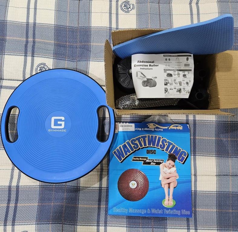 Range of fitness equipment - includes balance board, ab roller, waist twisting discSOLD AS LOT
