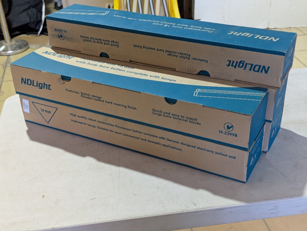 Fluorescent lights, NDLight, fluorescent twin 18 watt wide body bare batten complete with lampsSOLD AS LOT