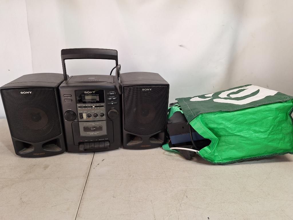 1x XBOX Forza Motorsport 10 with cables, 1x SONY Radio CFD-Z110 3-in-one stereo with cable, 1x SONY PS4 Console