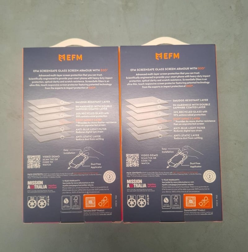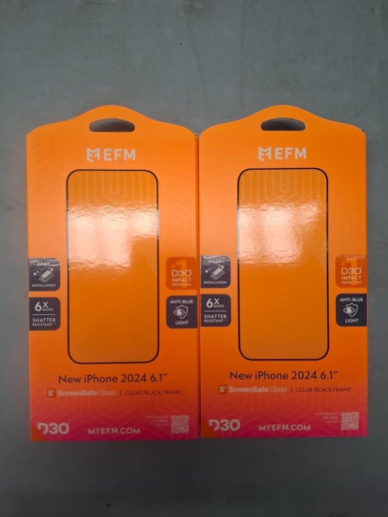 RRP $49.00 Each, EFM Clear/Black Frame ScreenSafe Glass Screen Protector For iPhone 6.1'Sold As Lot