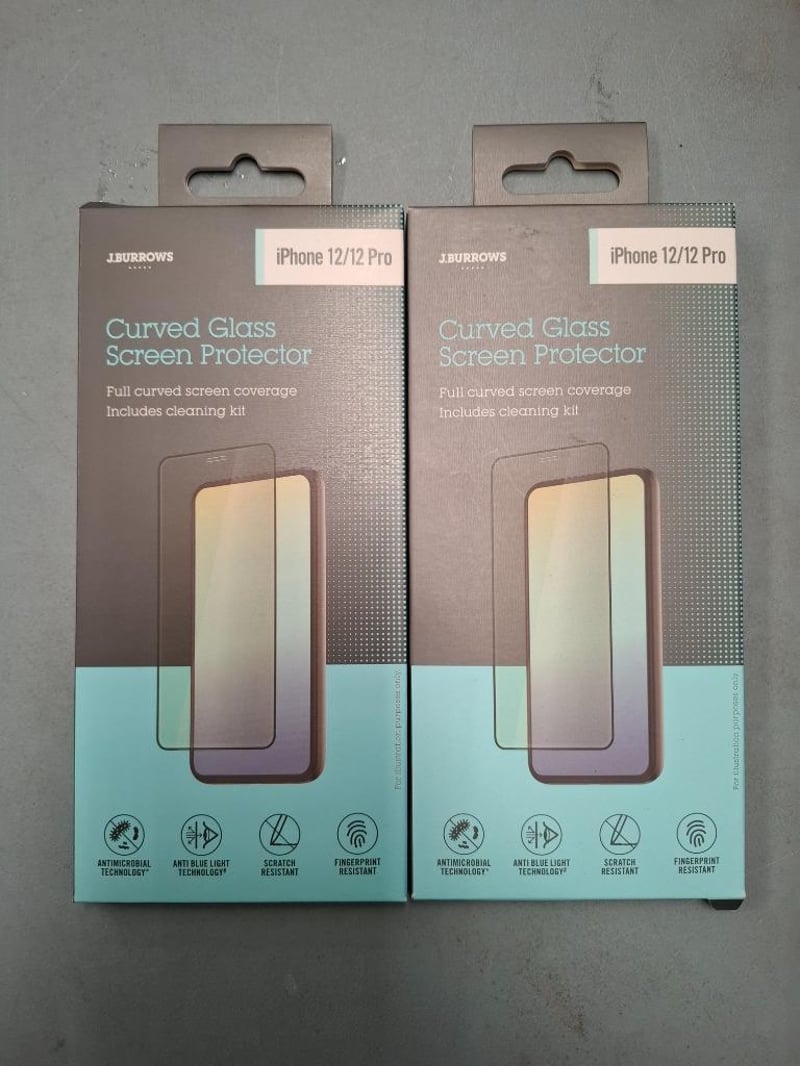 RRP $19ea, J.Burrows Curved Glass Screen Protector For iPhone 12/12 Pro, Qty 2Sold As Lot