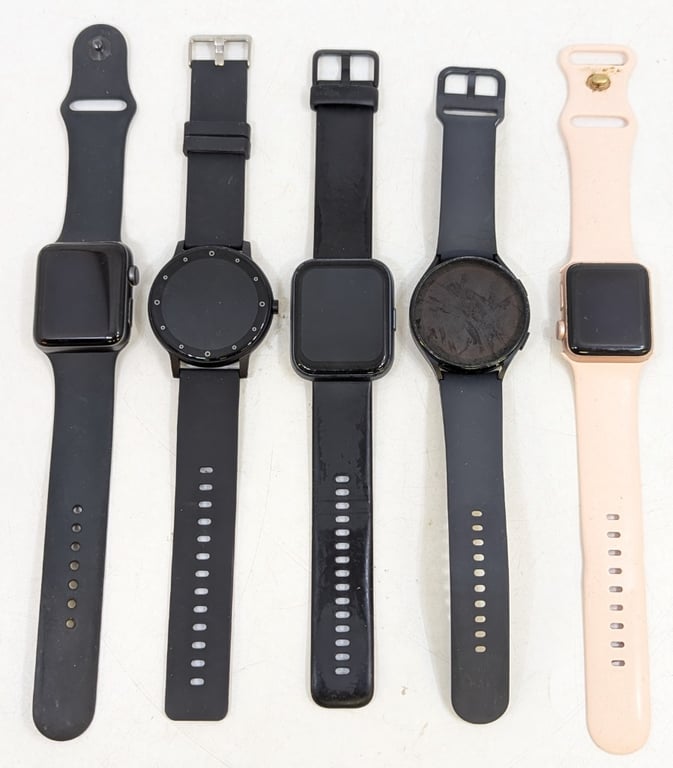 5x Smart Watches / Fitness Trackers, Brands Include Apple, RoHS, Samsung, EtcItems Untested, Unknown Working ConditionsSold As Lot